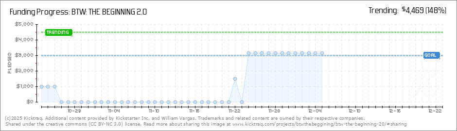 Help your backers reach your daily goals and help others see how you're doing. It's easy, with Kicktraq Mini.Here are a few quick snippits of code you can use to embed your personalized widget on your website, in your blog, and even on your favorite forum.