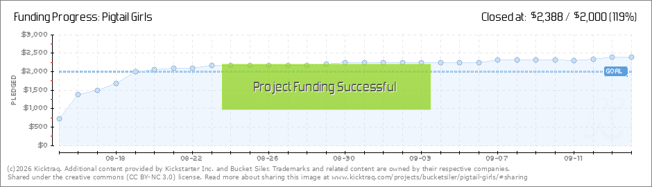 Pigtail Girls reached its funding goal today, after JUST 4 DAYS!!! Thanks SO much to everyone who pledged!! The project will be up for another 25 days, so it's not too late to lay claim to a zine, print, special-edition, or even an original piece of... (Read More)