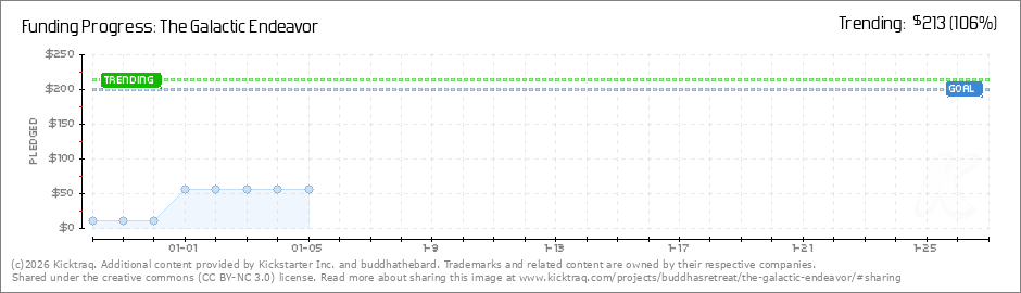 Help your backers reach your daily goals and help others see how you're doing. It's easy, with Kicktraq Mini.Here are a few quick snippits of code you can use to embed your personalized widget on your website, in your blog, and even on your favorite forum.