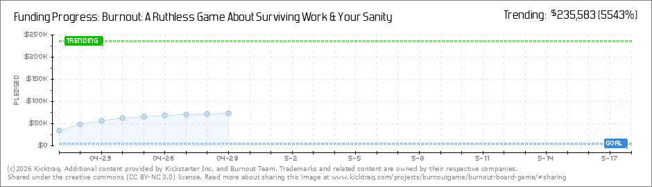 Help your backers reach your daily goals and help others see how you're doing. It's easy, with Kicktraq Mini.Here are a few quick snippits of code you can use to embed your personalized widget on your website, in your blog, and even on your favorite forum.