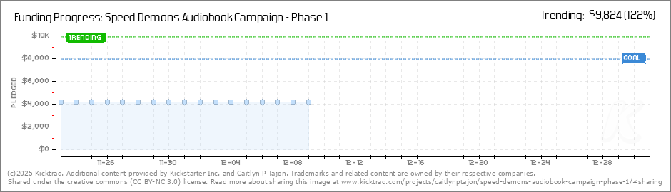 Help your backers reach your daily goals and help others see how you're doing. It's easy, with Kicktraq Mini.Here are a few quick snippits of code you can use to embed your personalized widget on your website, in your blog, and even on your favorite forum.