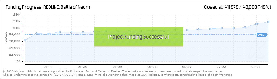 As we're getting closer to the final 48 hours of our campaign we wanted to take a moment to update on some of our contests and goals for REDLINE: Battle of Neom while also putting a spotlight on some existing REDLINE story supplements for our newer... (Read More)