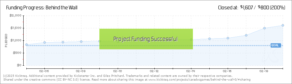 Wow. Thank you everyone! I didn't think Behind the Wall was likely to fund quickly, if it funded at all, but here we are. Thank you! In the next few updates I'll add a bit more about Behind the Wall, and I might take the opportunity to talk about... (Read More)