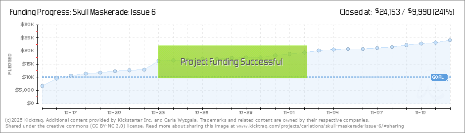 We all just unlocked another DIGITAL COMIC and the Split Skull Sticker! Origins 1 Digital Comic will now be available to EVERY backer and the Split Skull Sticker will be included for every physical book backer! UNLOCKED!And now to reveal the next 20k... (Read More)