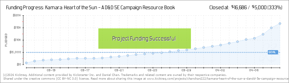 Dear backers, We want to take a moment to thank you for your incredible support and interest in our project, "Kamara: Heart of the Sun" D&D 5E campaign book. We are incredibly grateful to have you as our backers and we're so excited to bring this... (Read More)