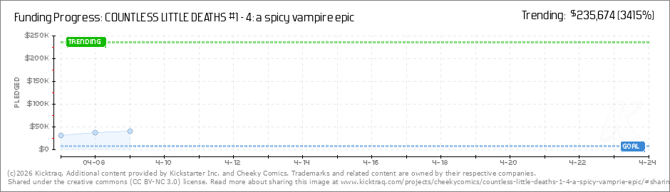 Countless Little Deaths #4 backers, Thanks for a great first few days! We are already funded and have unlocked our first two Stretch Goals. We have just announced a cross-promotion with another campaign from Space Between Entertainment, also written... (Read More)