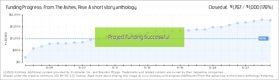 The crew at Kickstarter officially added "From The Ashes, Rise" to their list of projects they love! In more financial news, we have reached 60% of our goal within the first 36 hours!! That's insane! Thank you everyone who helped us so far! You guys... (Read More)
