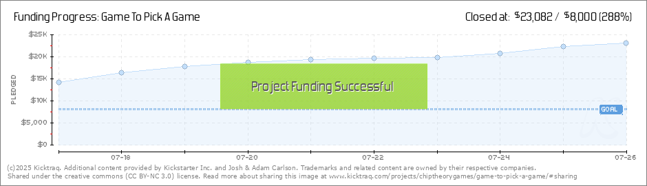 Greetings from The Gateway! Game to Pick a Game has funded, and we're thrilled you've joined us. We legitimately had no idea what to expect from this goofy little project, and we're thrilled with our first day's progress and funding. Thank you all... (Read More)