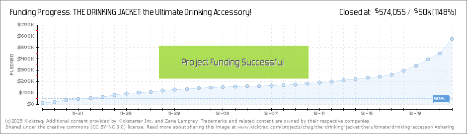 We've just hit the TOP FOUR "fashion & apparel" on Kickstarter - ever! Woo hoo! And we hit $500,000! So, I'm unlocking Blue Hawaiian - a limited edition color. So, if you've backed The Drinking Jacket, when the campaign ends you'll be emailed a... (Read More)