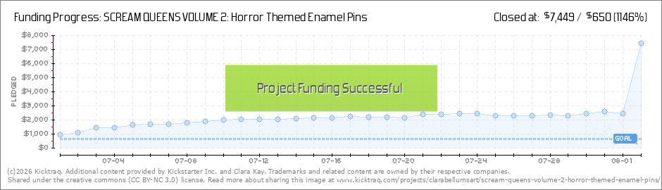 THE FIRST 24 HOURS Welcome to Scream Queens Volume Two! We're here again on the road to getting another set of pins funded. In the first 24 hours of the campaign, we've raised almost as much as the 1st Volume did in the first 4 days. There's plenty... (Read More)