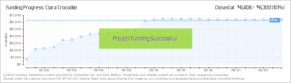 I cannot find the words to express how thankful I am for the support I have received for Clara Crocodile. Crowd funding was successful and I am working my butt off to get Clara on her way and out into the world. I will try to meet deadlines but... (Read More)