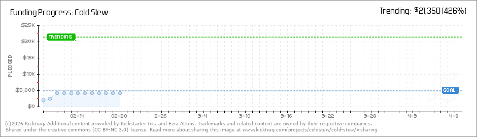 Help your backers reach your daily goals and help others see how you're doing. It's easy, with Kicktraq Mini.Here are a few quick snippits of code you can use to embed your personalized widget on your website, in your blog, and even on your favorite forum.
