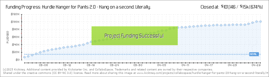 A big hello to all our new and returning backers! We couldn't be happier that so many of you share our enthusiasm for the new and improved Hurdle Hanger for Pants 2.0 and can't wait to bring it to life. Thank you all so much for making this happen!... (Read More)