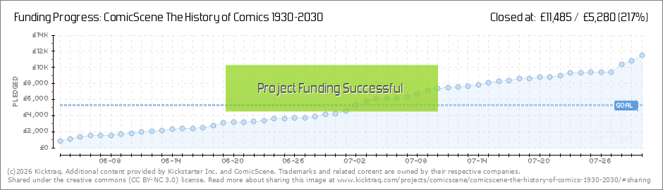 Wow! Thanks to everyone supporting the History of Comics by pledging, sharing or writing in the comic media about us. It's all very much appreciated. We are now £3000 over target and close to stretch goals with under a fortnight to go. The... (Read More)