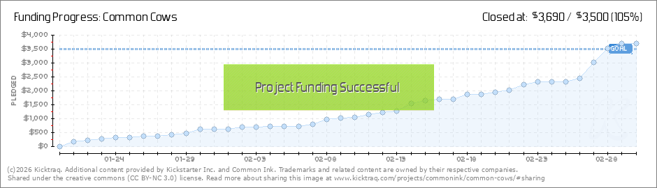Thanks you so much to everyone who has backed Common cows thus far. We have 10 days left to get the remaining 50% 😅 So it would be greatly appreciated if you all could tell at least one other person about Common cows. We have been getting the word... (Read More)