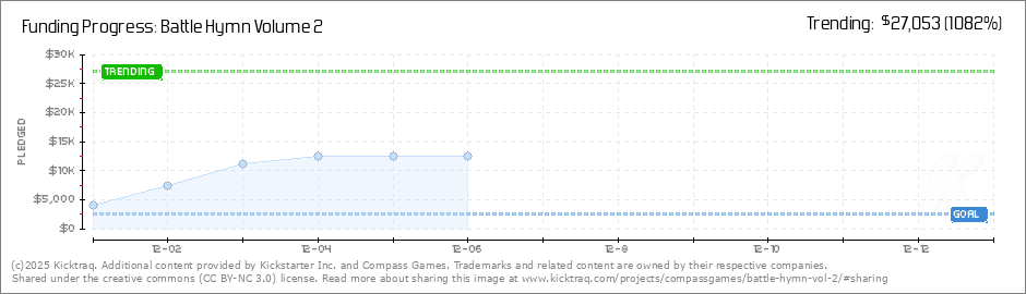 Help your backers reach your daily goals and help others see how you're doing. It's easy, with Kicktraq Mini.Here are a few quick snippits of code you can use to embed your personalized widget on your website, in your blog, and even on your favorite forum.