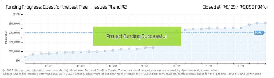 Yay! Our Kickstarter campaign has topped $7500, unlocking our second Stretch Goal. That means before we send out our comic books to our supporters, every single print copy of QUEST FOR THE LAST TREE Issues #0, #1, and #2 will be hand signed by the... (Read More)