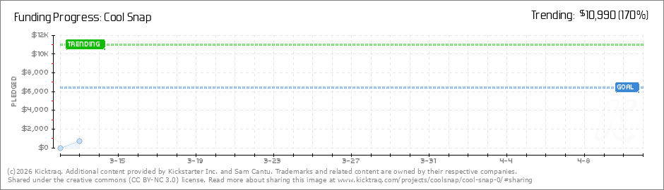 Help your backers reach your daily goals and help others see how you're doing. It's easy, with Kicktraq Mini.Here are a few quick snippits of code you can use to embed your personalized widget on your website, in your blog, and even on your favorite forum.