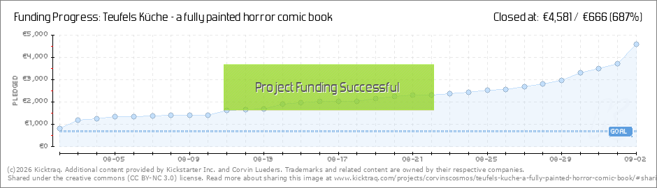And the second story is unlocked. Thanks again to all the newcomers and those who increased their pledge! The second story in Teufel's kitchen: The Clown. Besides the hardcover, that was my second big goal. Without the story, a hardcover wouldn't... (Read More)