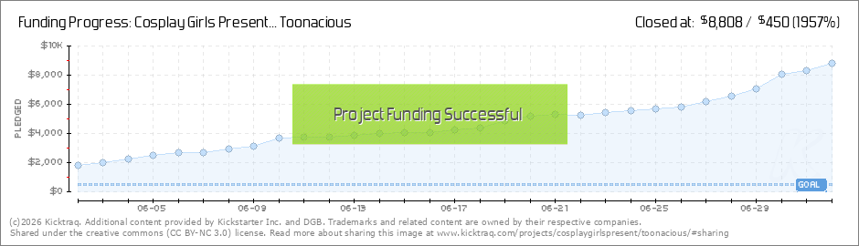 Help your backers reach your daily goals and help others see how you're doing. It's easy, with Kicktraq Mini.Here are a few quick snippits of code you can use to embed your personalized widget on your website, in your blog, and even on your favorite forum.