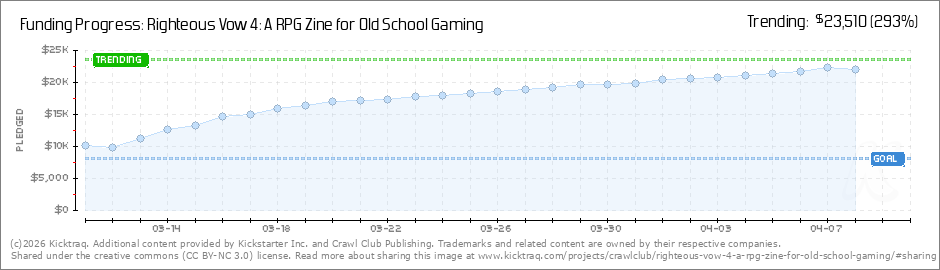 Over $20K and closing in on 400 backers!Hey everybody! I wanted to check in and say thank you! Thank you to all of you who have made this awesome project possible, and those of you who continue to support our third party publishing endeavors. We are... (Read More)