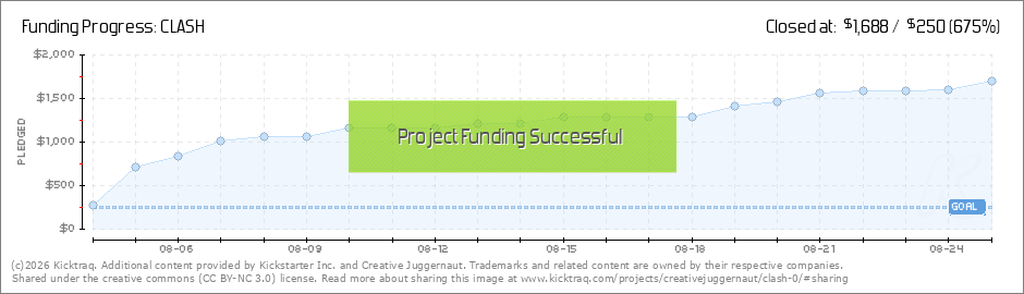 For those of you that have joined our Creative Juggernaut family by backing Clash, we thank you. We funded in the first 11 minutes or so of the launch -- which is incredible. We are well past double our goal, so this is going to happen! Please... (Read More)