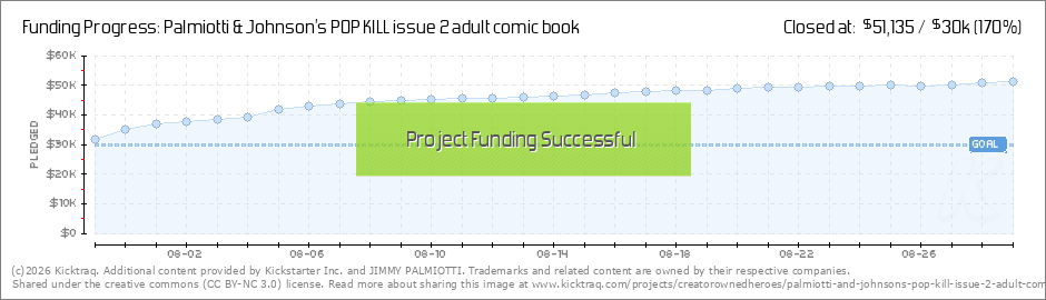 POP KILL #2 Marked as "PROJECT WE LOVE" Fabulous news folks! POP KILL #2 has been given a nice little spotlight and notation by Kickstarter as a "PROJECT WE LOVE" tag. This is a great sign when of all the campaigns going on, we get a little tip... (Read More)