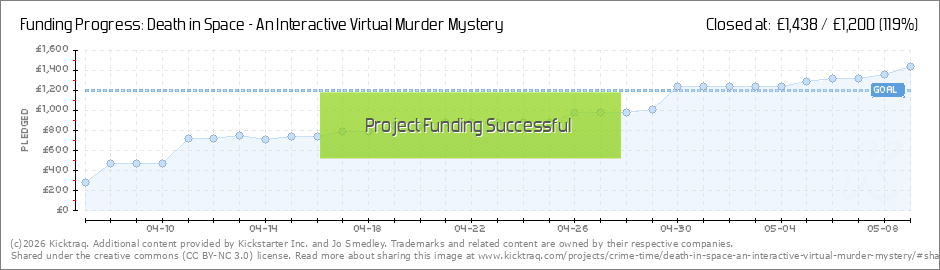 Hi all We would like to say a huge thank you to everyone who has supported the project and helped to fund Death in Space successfully! We still have just over an hour left before the project deadline, so for anyone looking to book onto Death in... (Read More)