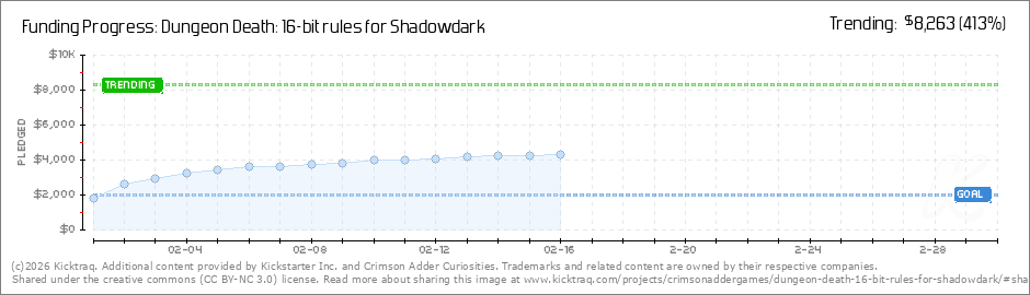 Help your backers reach your daily goals and help others see how you're doing. It's easy, with Kicktraq Mini.Here are a few quick snippits of code you can use to embed your personalized widget on your website, in your blog, and even on your favorite forum.