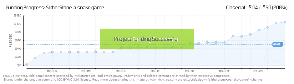 Help your backers reach your daily goals and help others see how you're doing. It's easy, with Kicktraq Mini.Here are a few quick snippits of code you can use to embed your personalized widget on your website, in your blog, and even on your favorite forum.