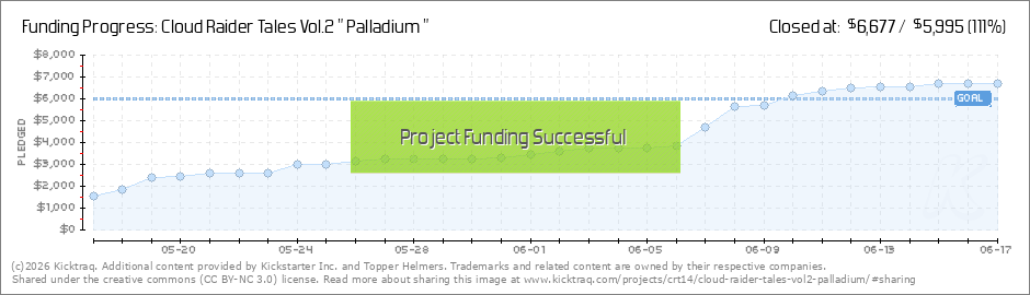 Good morning, a few quick updates, Cloud Raider Tales Vol. 2 " Palladium " is now 60% funded, everyday we get a little closer. Today we are now 2 weeks from ending . I thought I'd show you another unseen panel from Page 7. Again if you think you... (Read More)