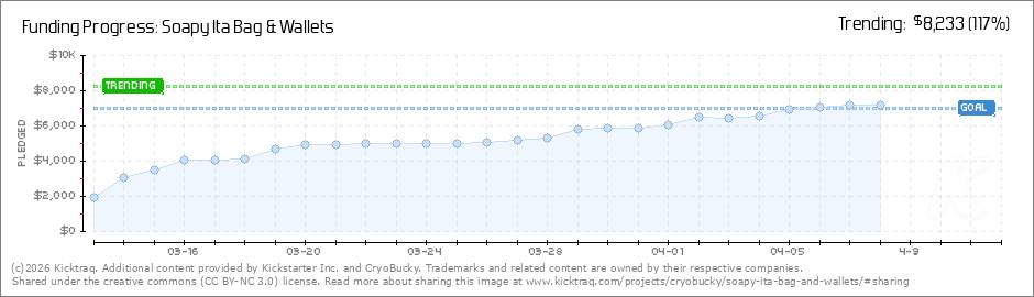Help your backers reach your daily goals and help others see how you're doing. It's easy, with Kicktraq Mini.Here are a few quick snippits of code you can use to embed your personalized widget on your website, in your blog, and even on your favorite forum.