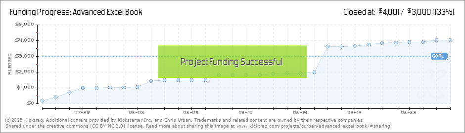 Cheers to all of you for helping make this project successful on Kickstarter! We are now over 120% of goal, with 5 days to go. I've been working on the ebook (PDF) version of Advanced Excel to make sure everything looks nice on the screen. It will be... (Read More)