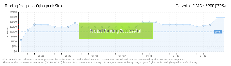Help your backers reach your daily goals and help others see how you're doing. It's easy, with Kicktraq Mini.Here are a few quick snippits of code you can use to embed your personalized widget on your website, in your blog, and even on your favorite forum.