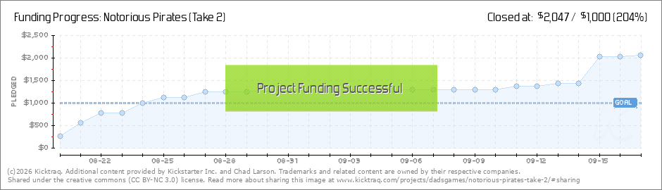I can't believe we are only two days in, and we are 75% funded. Thank you to all the backers of this project. I had a great Podcast interview last night with WiscoDice about Notorious Pirates. As soon as they have it ready, I will post the link in... (Read More)