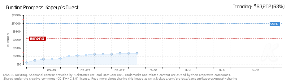 Help your backers reach your daily goals and help others see how you're doing. It's easy, with Kicktraq Mini.Here are a few quick snippits of code you can use to embed your personalized widget on your website, in your blog, and even on your favorite forum.