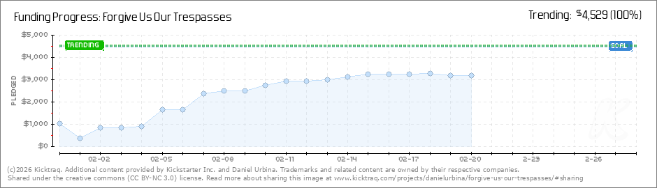 65% funded — and only two weeks left! Thank you for supporting Forgive Us Our Trespasses so far. We’re deep into the journey now, and every share or pledge helps push us closer to the finish line. Let’s see if we can take this all the way... (Read More)