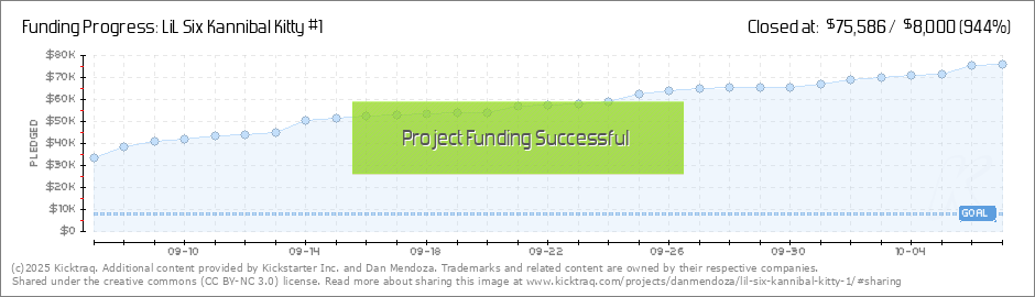 We just hit 66K! that means the 4 inch Kannibal Kitty enamel pin is now free to all Physical backers. Next goal is just around the corner which will be 20 more random inserts of The Pound of Flesh variant. Still iLL Army!!!! you guys rock! -Dan... (Read More)