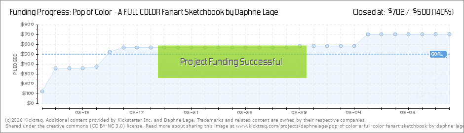 Thank you so much for helping my FIRST SOLO PROJECT reach it's goal! Now let's see what we can do in the remaining 24 days! Thank you again for all your support! --Daphne (Read More)