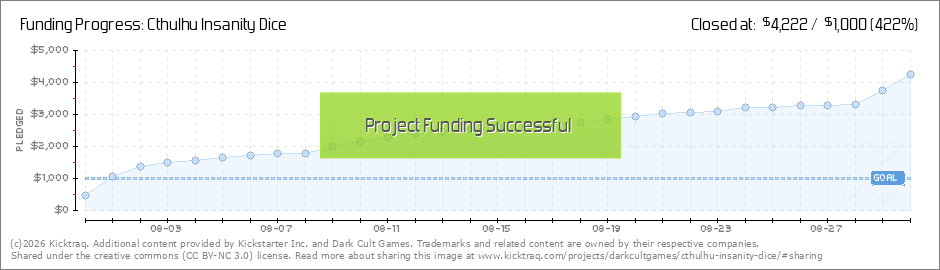 Tomorrow marks the 1 week mark and we are currently just over 170% funded. A very nice start, but we can do better. I removed the pictures of the dice because of the bad art and people were thinking that was the final art. I hope everyone likes the... (Read More)