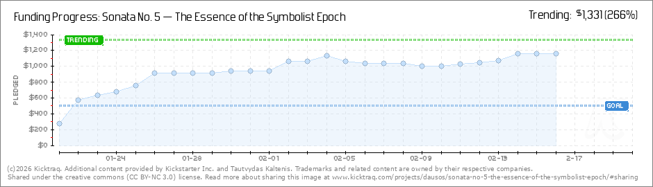 Dear backers, We’ve just crossed another important milestone in the Sonata No. 5 journey — half of the campaign time is now behind us, with 15 days left to go. Along the way, we passed a meaningful psychological threshold: $1,000+ raised. Thank... (Read More)