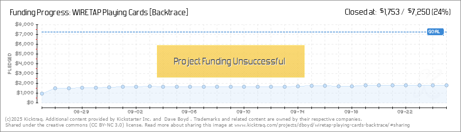 Help your backers reach your daily goals and help others see how you're doing. It's easy, with Kicktraq Mini.Here are a few quick snippits of code you can use to embed your personalized widget on your website, in your blog, and even on your favorite forum.