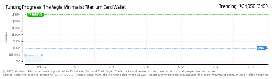 Help your backers reach your daily goals and help others see how you're doing. It's easy, with Kicktraq Mini.Here are a few quick snippits of code you can use to embed your personalized widget on your website, in your blog, and even on your favorite forum.