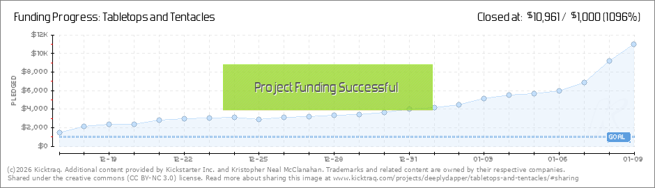 What's Kraken, fiends? We have officially funded TABLETOPS & TENTACLES! I can't tell you how excited we are to work on this project and how much your support means to us. This project has been in the works for years and to see so many people... (Read More)