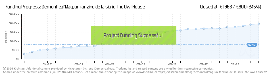Help your backers reach your daily goals and help others see how you're doing. It's easy, with Kicktraq Mini.Here are a few quick snippits of code you can use to embed your personalized widget on your website, in your blog, and even on your favorite forum.