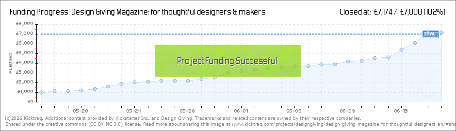 Design Giving Magazine – Issue 1 We're pleased to say we've hit our target! Thanks so much for everyone who's pledged, shared and supported my campaign over the last 29 days... it really means a lot! Without you lovely people this would have of... (Read More)