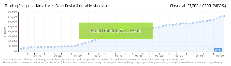 Thank you very much for your support, Ninja Lace has been funded. Every pledge is very much appreciated. Ninja Lace funded in 4 hours (Read More)