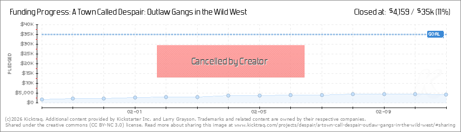 Well, there's good news and even better news!I am announcing that the current Kickstarter campaign for A Town Called Despair will be cancelled on February 11th and a new revised campaign for A Town Called Despair will launch within 3 or 4 days... (Read More)