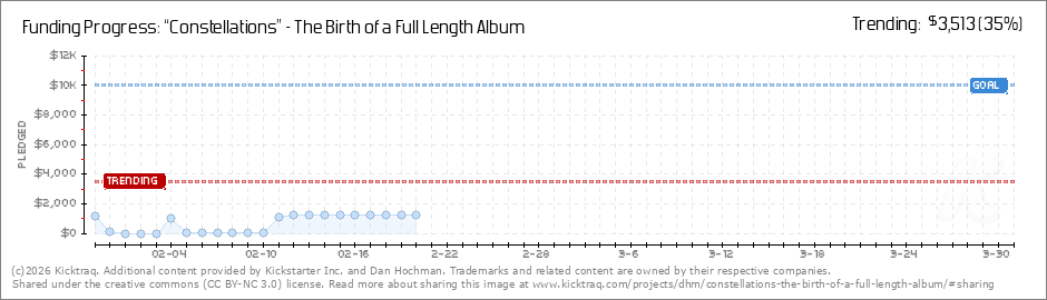 Help your backers reach your daily goals and help others see how you're doing. It's easy, with Kicktraq Mini.Here are a few quick snippits of code you can use to embed your personalized widget on your website, in your blog, and even on your favorite forum.
