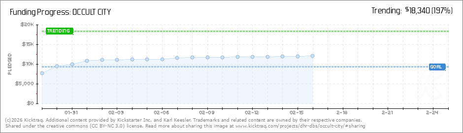 Thanks to 184 backers, as of this moment, OCCULT CITY is 100% Funded. We hope to keep rolling, unlocking some of our stretch goals in coming days. More about that soon. Thanks again for your support. You made it happen. (Read More)